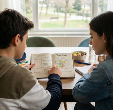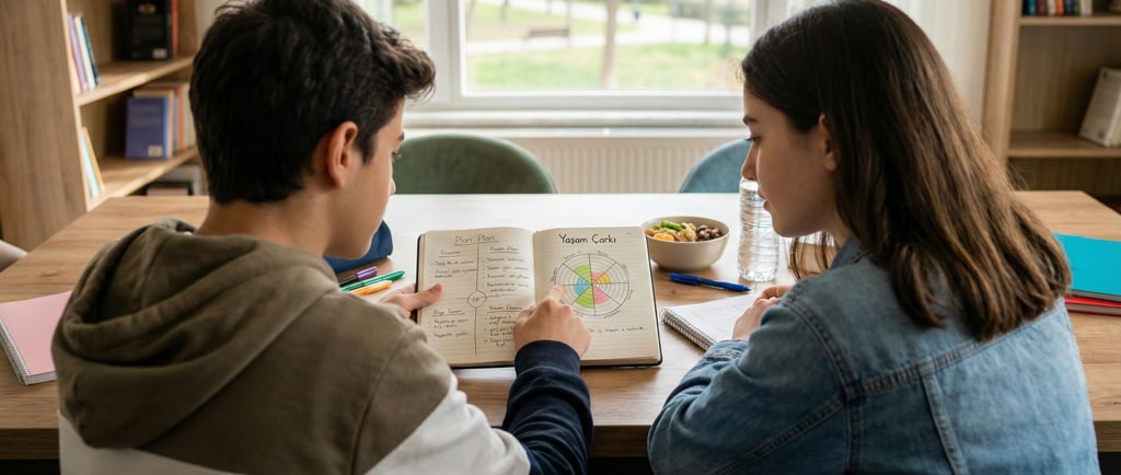 Ergen koçluğunda, öncelikle ergen çocuğunuz ile bağ kurulur, çocuğunuz seansa hazırlanır. Sonra çocuğunuzun hayatındaki okul (dersler), aile, ilişkiler, sosyal hayat gibi alanlar "Yaşam Çarkı Formu" ile incelenir ve hangi alan veya alanlar üzerinde çalışılacağı belirlenir.