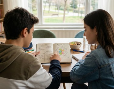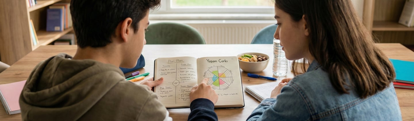 Ergen koçluğunda, öncelikle ergen çocuğunuz ile bağ kurulur, çocuğunuz seansa hazırlanır. Sonra çocuğunuzun hayatındaki okul (dersler), aile, ilişkiler, sosyal hayat gibi alanlar "Yaşam Çarkı Formu" ile incelenir ve hangi alan veya alanlar üzerinde çalışılacağı belirlenir.